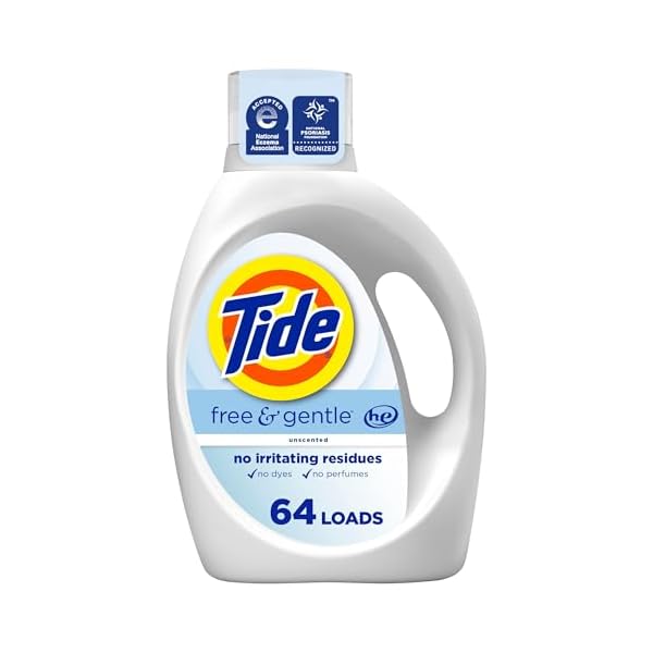 Tide Free & Gentle Liquid Laundry Detergent is a hypoallergenic, scent-free formula trusted by experts and certified by NEA and NPF, designed to deliver a deep clean while being gentle on sensitive skin. It effectively removes 100% of common stains, works in all washing machinesâincluding cold waterâand leaves clothes feeling soft without residues, dyes, or perfumes. Ideal for those with allergies or skin sensitivities, this concentrated detergent provides thorough cleaning in every load, making it a reliable choice for families, newborns, and individuals with skin concerns.