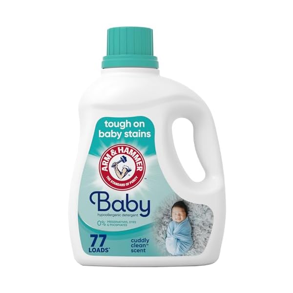 ARM & HAMMER Baby Hypoallergenic Liquid Laundry Detergent is a gentle yet effective formula designed to tackle stubborn baby stains like food and juice while being safe for sensitive newborn skin, containing no dyes, phosphates, or preservatives. Certified by the EPA Safer Choice program, this dermatologist- and pediatrician-tested detergent is suitable for newborns and infants, offering a hypoallergenic, fragrance-neutral clean that leaves clothes soft and residue-free. Reviewers consistently praise its stain-removing power, affordability, and mild scent, highlighting its reliability and gentle nature, though some note it may require additional effort to dissolve in cold water.